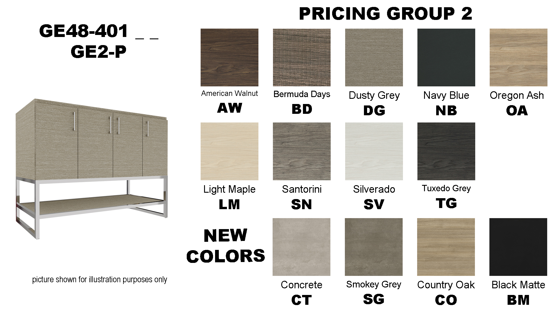 Click below to view cabinet color options available for our made to order vanities.