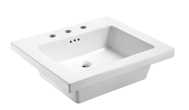 Tribeca 2522 ceramic sink top in white. Available with 1 hole faucet drill and 8″ wide faucet drill. This sink fits any standard depth vanity like the the Chelsea, Daytona, Metropolitan, Priva and South Beach.